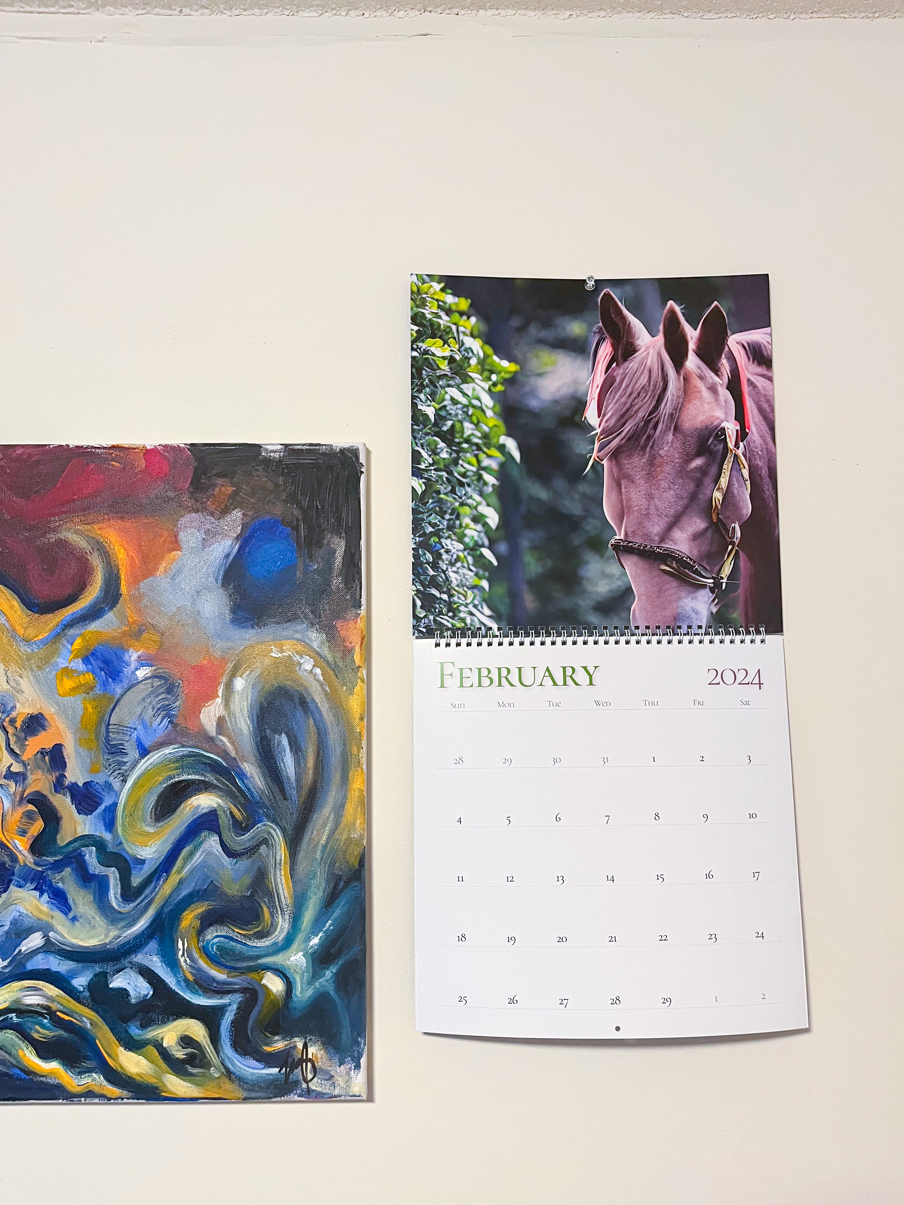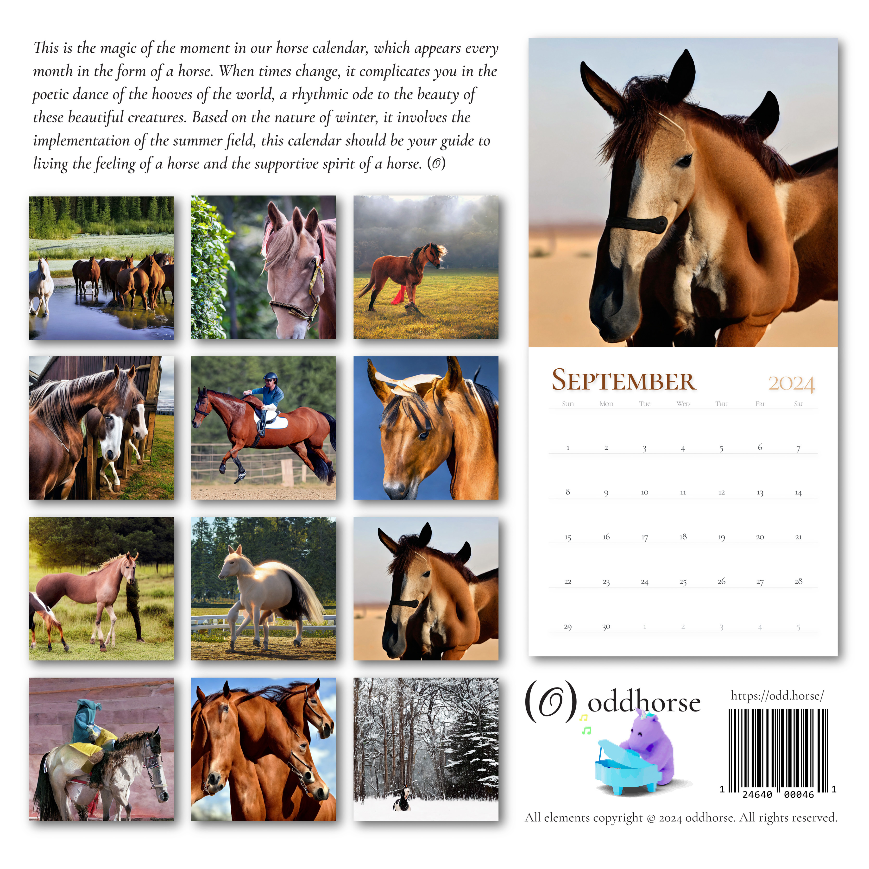a perversion of horse calendars for horse girl types. odd horses, if you will! made as merch for oddhorse; sold in limited run at printed matter in nyc; displayed in nyu gallery night in late 2024.